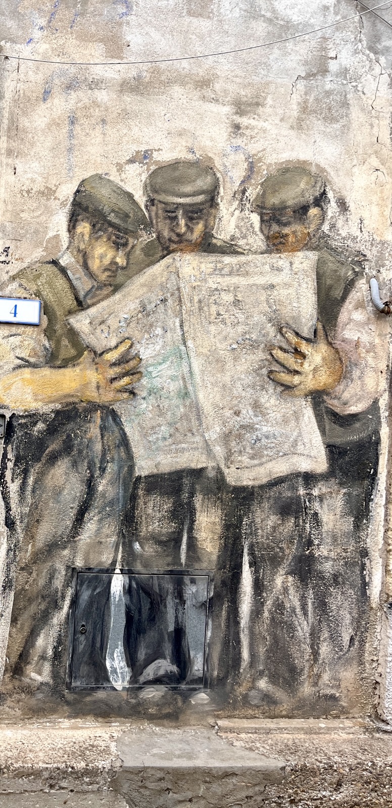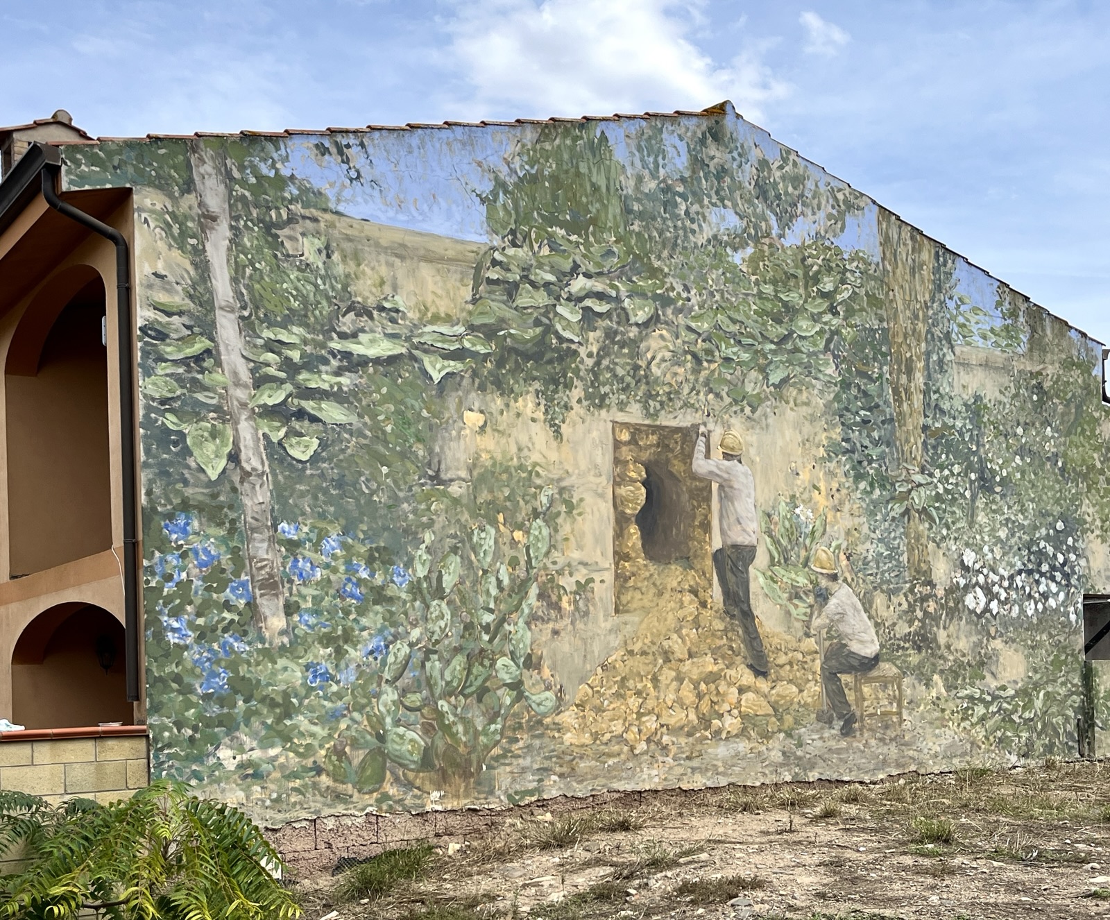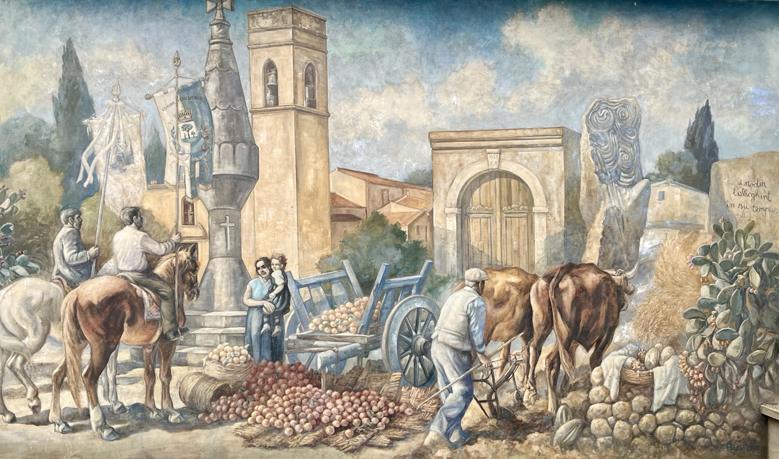 Die Idee für diese Form der Straßenkunst geht auf Pinuccio Sciola (1942-2016) zurück, der mit seinen „Klangsteinen“ zu Weltruhm gelangte (vgl. dazu den Beitrag „Wo Steine wie das Universum klingen“ in diesem Blog). Er war in der Zeit seiner „Wanderjahre“ in Mexiko zum Anhänger des sogenannten „Muralismo“ geworden und malte Ende der 1960-Jahre seine ersten politischen Murales an die Wände seines Heimatortes, ganz im Geiste der Zeit. Und er initiierte mit viel Überzeugungsarbeit die anderen Bewohner von San Sperate, es ihm gleichzutun. Weitere Orte wie beispielsweise Urzulei oder Orgosolo, das als Zentrum der Murales gilt, haben sich ein Beispiel daran genommen.