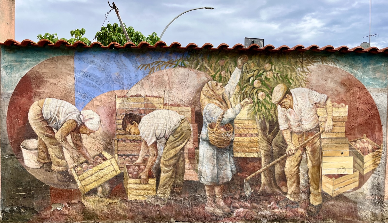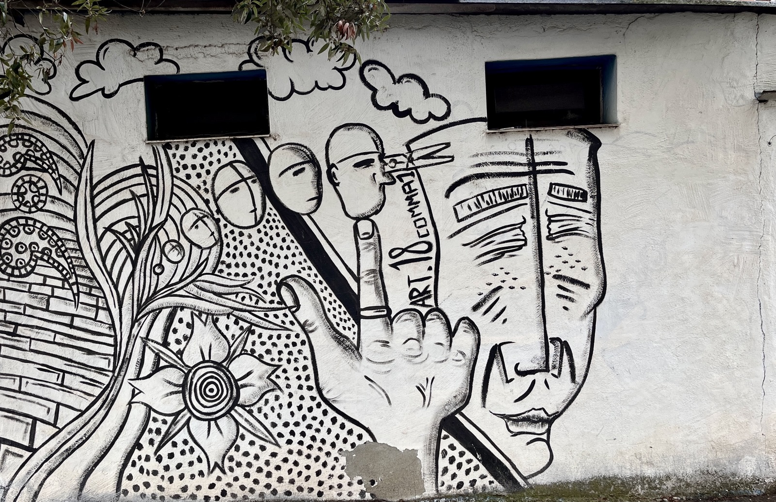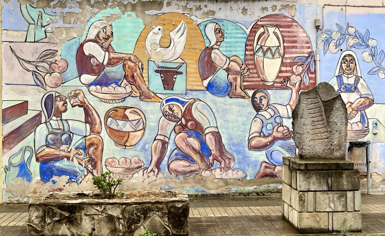 Die Idee für diese Form der Straßenkunst geht auf Pinuccio Sciola (1942-2016) zurück, der mit seinen „Klangsteinen“ zu Weltruhm gelangte (vgl. dazu den Beitrag „Wo Steine wie das Universum klingen“ in diesem Blog). Er war in der Zeit seiner „Wanderjahre“ in Mexiko zum Anhänger des sogenannten „Muralismo“ geworden und malte Ende der 1960-Jahre seine ersten politischen Murales an die Wände seines Heimatortes, ganz im Geiste der Zeit. Und er initiierte mit viel Überzeugungsarbeit die anderen Bewohner von San Sperate, es ihm gleichzutun. Weitere Orte wie beispielsweise Urzulei oder Orgosolo, das als Zentrum der Murales gilt, haben sich ein Beispiel daran genommen.
