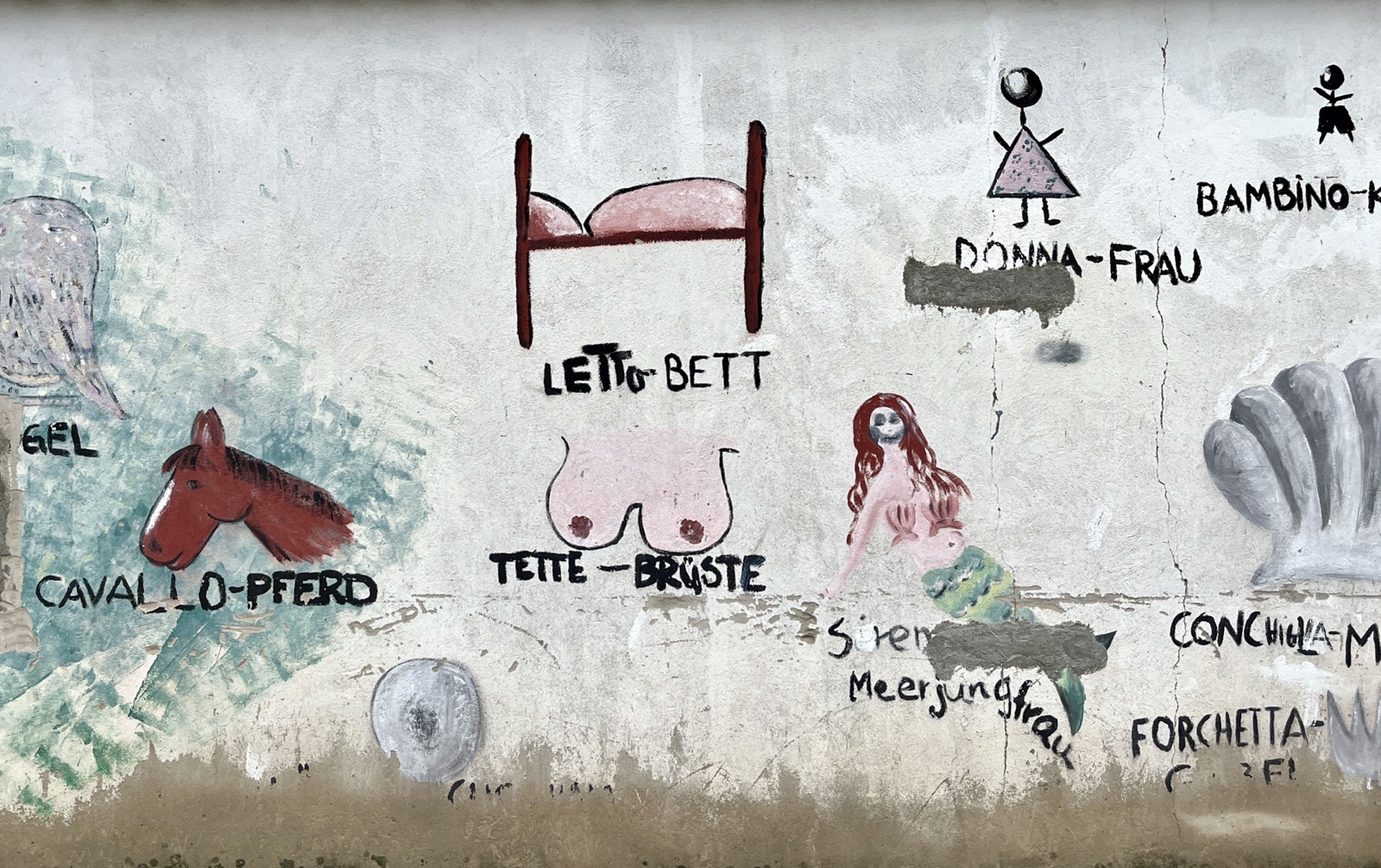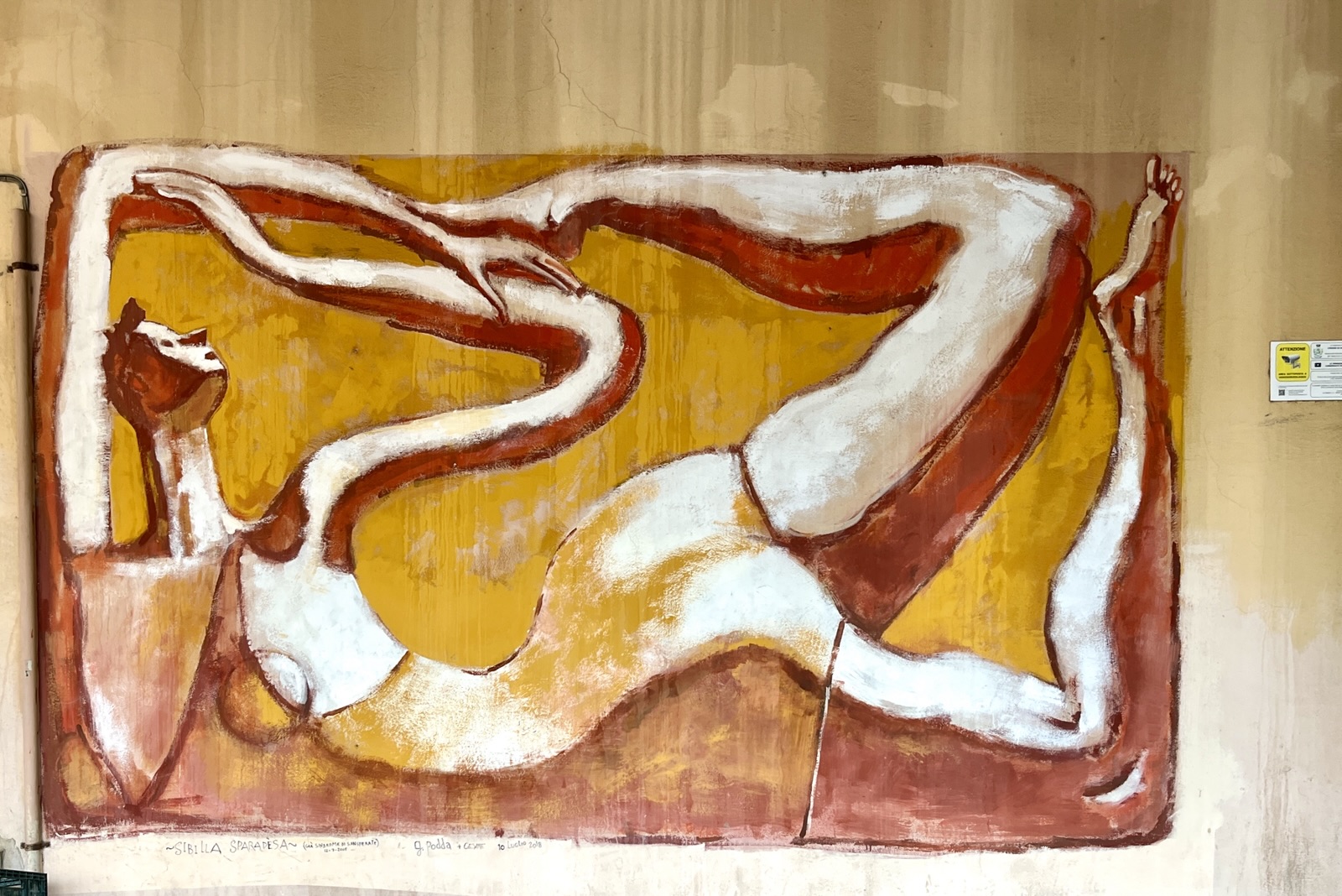 Es sollen um die 300 Werke sein, die das 8.500-Seelen-Städtchen zieren. Sie gehören zum Alltagsbild wie die kleine Kaffeebar an der Hausecke oder der Gemüseladen zwei Häuser weiter. Niemand scheint sie so richtig zu beachten oder gar zu pflegen. Die Kunstwerke sind zugeparkt, sie sind verblasst oder der Putz, auf den sie gemalt wurden, bröckelt ab. Ganz normal. Was den Kunstliebhaber entsetzen könnte, wird in San Sperate wahrscheinlich mit Achselzucken kommentiert.