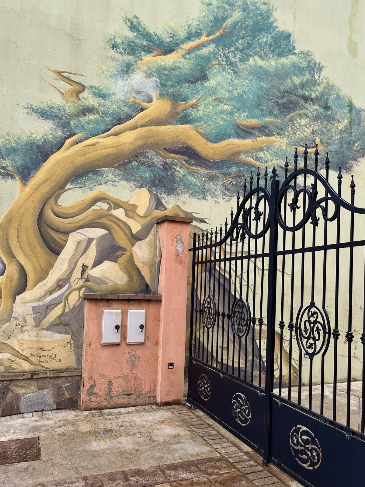 Es ist nicht leicht, eine Ordnung in das Gesehene zu bringen. Denn genau das unterscheidet ja eine Kunstgalerie oder ein Museum vom Museumsdorf San Sperate. Man kann die Werke nicht einfach unter einem bestimmten Aspekt zusammenstellen. Sie sind eben, wo sie sind und der Betrachter schlendert durch die Straßen und lässt sich inspirieren. Ein bisschen so, wie die Biene herumfliegt und hier und da Nektar saugt. Ihre Flugbahn lässt sich nicht im Vorhinein bestimmen. Darauf kommt es ja auch nicht an – der Nektar ist das Wesentliche.