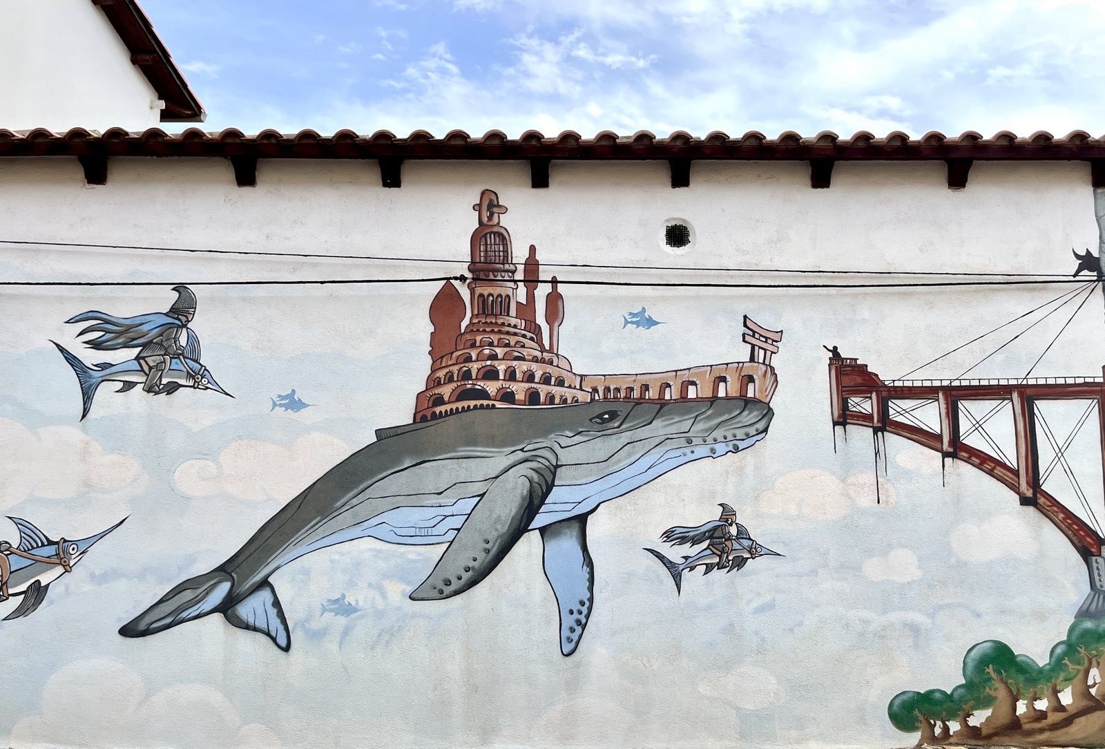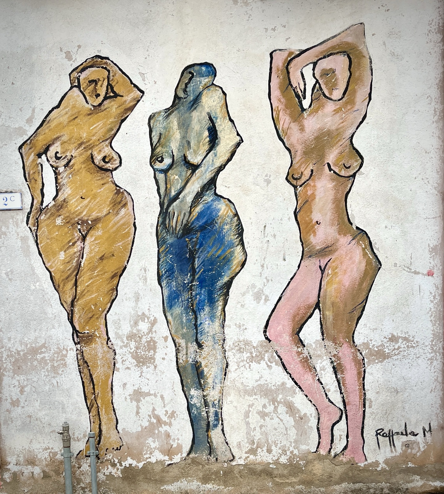 Auf Schritt und Tritt begegnet dem Besucher Kunst: vom kleinen Bild an der Hausecke bis zum hausfassadengroßen Gemälde, als Skulptur oder dreidimensionale Darstellung, Foto oder einfach nur künstlerische Verschönerung eines Hauseingangs oder einer Mauer.