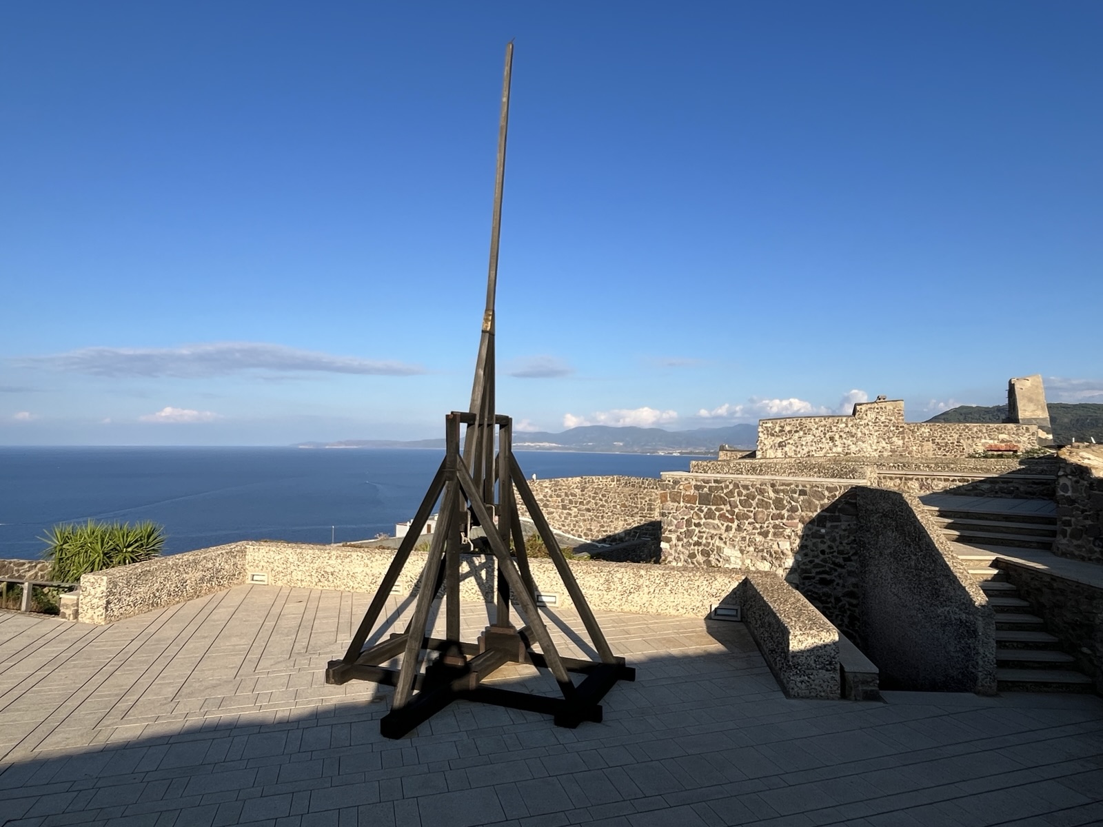 Die Burgbesichtigung macht Spaß. An klaren Tagen hat man von der oberen Terrasse einen Panoramablick, der bis zum Capo Testa und nach Korsika reicht.