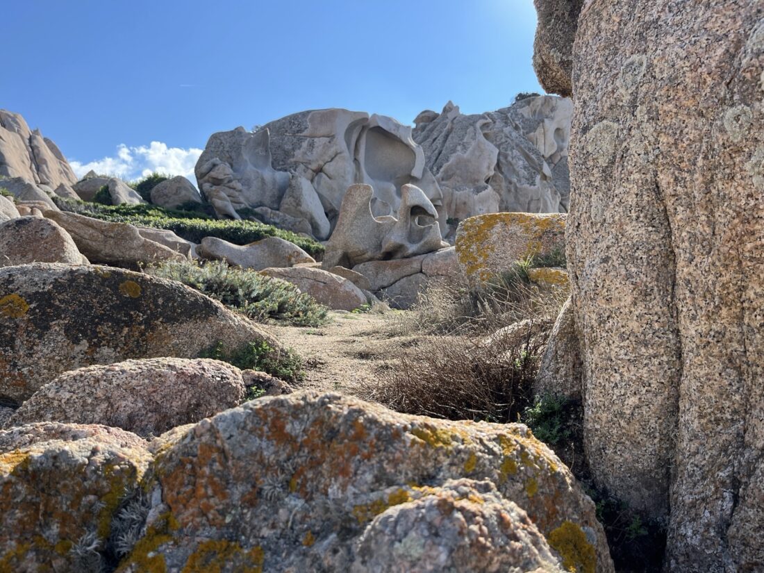 Die blendend weißen Granitformationen, die man am Capa Testa unmittelbar erleben kann, sind einfach unglaublich. An manchen Stellen türmen sich die Gebilde auf, verwinden sich ineinander, brechen unvermittelt ab. Es ist, als hätte ein wütender Riese Ton durch die Hände gequetscht, der dann erstarrt wäre.