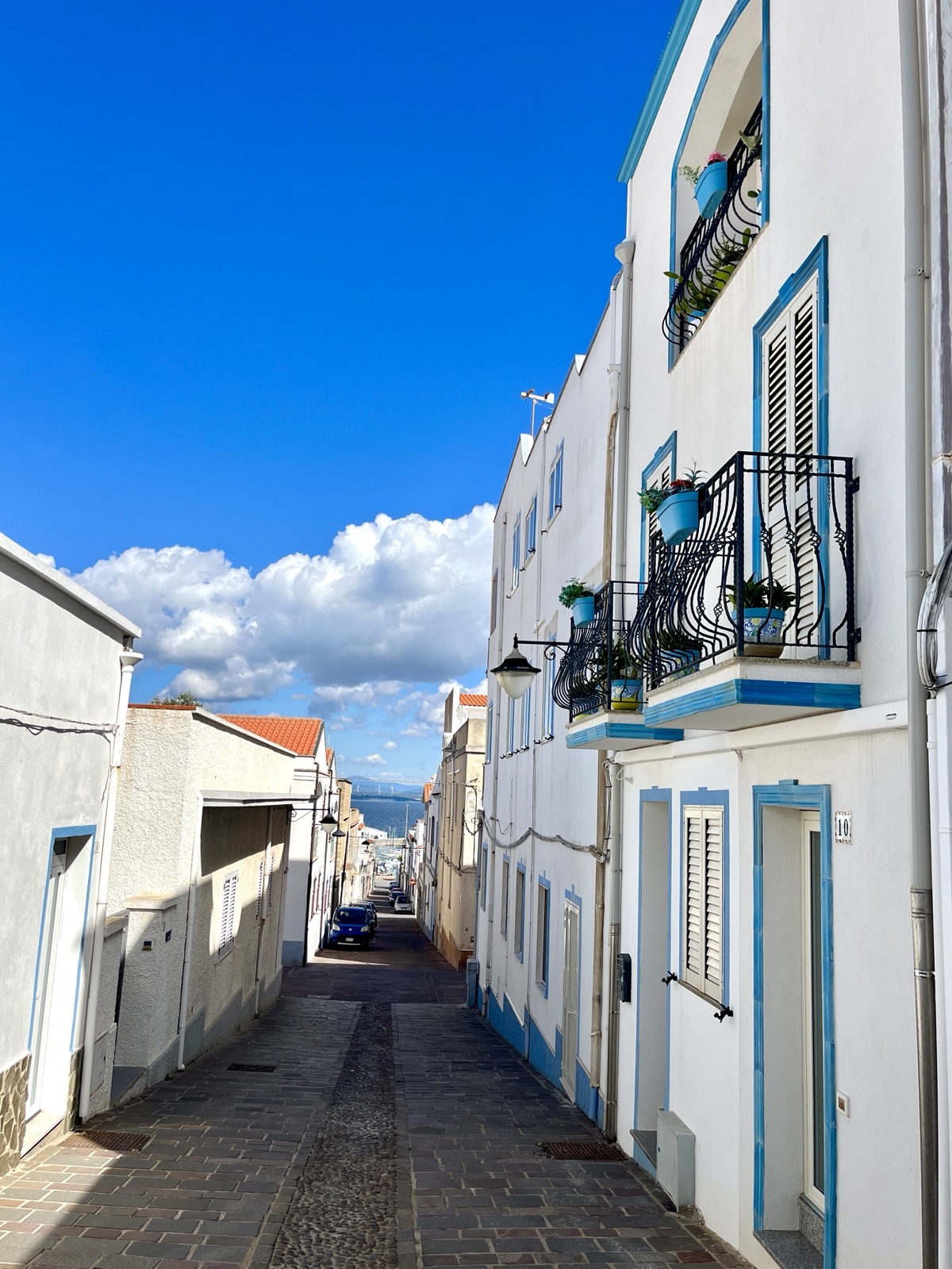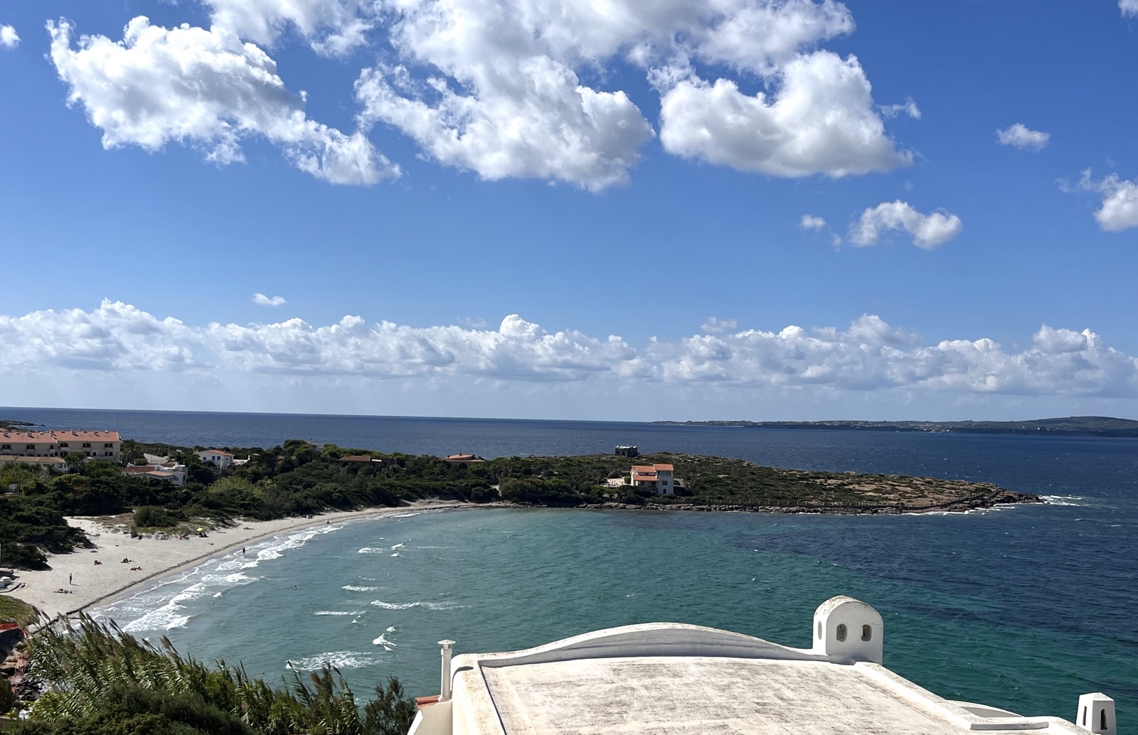 Unsere erste Tour ging Richtung Nordwesten, nach Calasetta, dem Fährhafen für die Nachbarinsel Isola di San Pietro. Das Städtchen ist vor etwa 200 Jahren quasi auf dem Reißbrett entstanden, als hier ligurische Flüchtlinge aus dem französischbesetzten Genua zwangsangesiedelt wurden. Alle Straßen verlaufen rechtwinklig zueinander. Das Wahrzeichen ist ein Wachtturm an der höchsten Stelle.