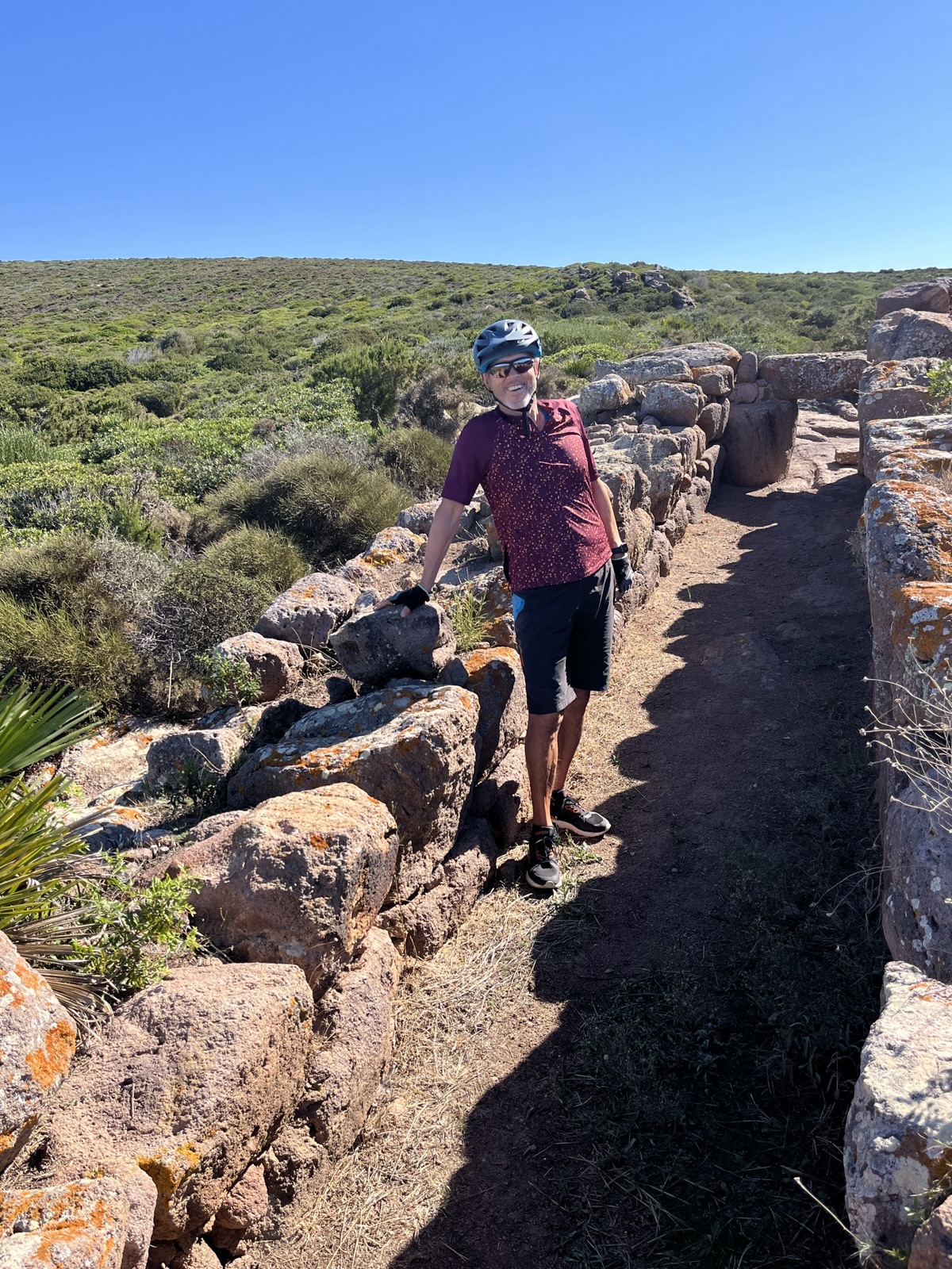 Die zweite Radtour, Richtung Süden zum Capo Sperone, war um einiges anspruchsvoller und vielseitiger. Auch diesmal wieder herrliche Panoramen, aber auch ein spannender Einblick in die reiche historische Vergangenheit von Sardinien. Wir legten einen Zwischenstopp bei den sogenannten „Grabkammern der Riesen“ ein. Sie sind ein beeindruckender Beleg der Nuraghenkultur (Bronzezeit, ab 1.600 v.Chr.).