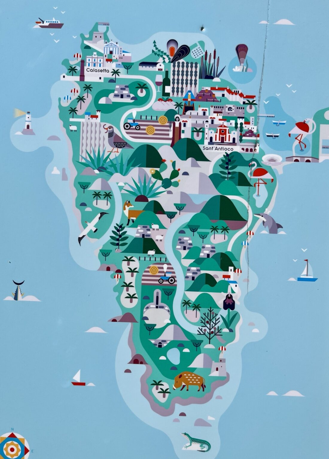 Die Isola di Sant‘Antioco im Südwesten ist mit 109 Quadratkilometern, einer Länge von 18,9 Kilometern und einer Breite von 8,2 Kilometern Sardiniens zweitgrößte Insel. Sie hat etwa 14.000 Einwohner. Also alles in allem recht überschaubar.