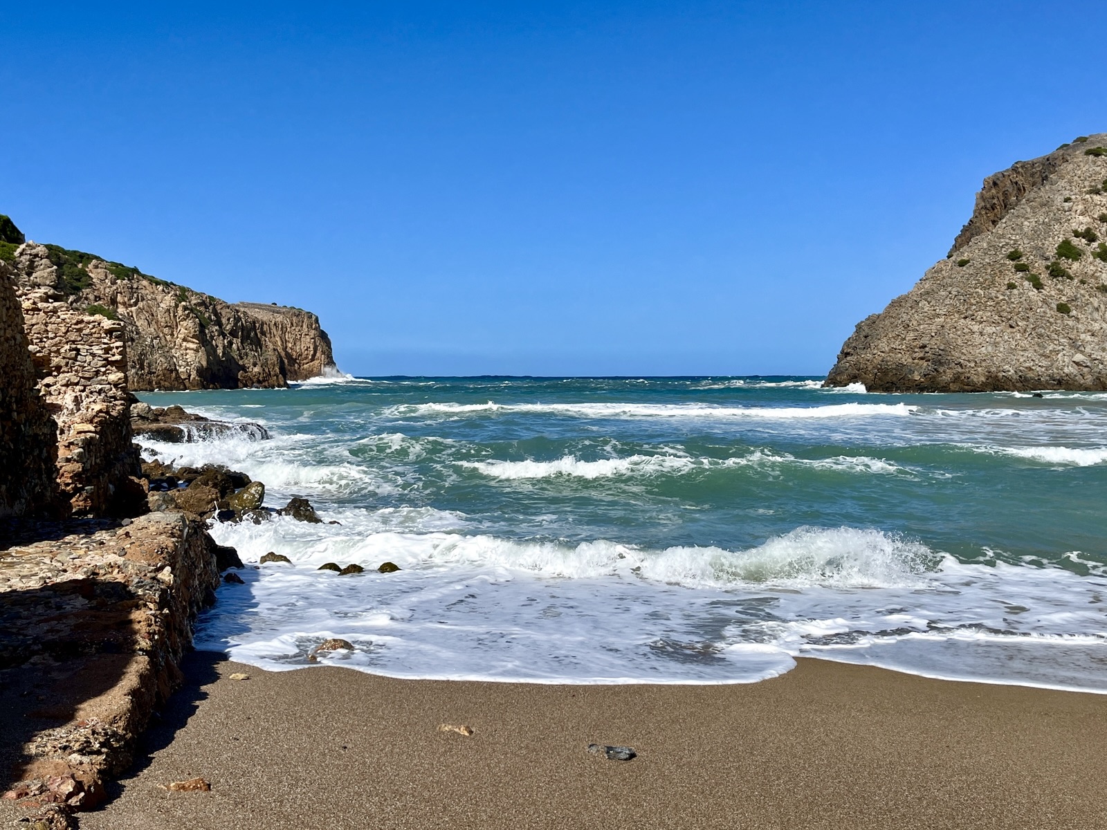 Linker Hand stehen die Reste einer Thunfischfangstation, auf dem Kap wäre ein Küstenwachturm aus der Zeit der Spanier nach einem 20-minütigen Fußmarsch zu erreichen … Oder einfach mal in die Dünen gehen, die sich an den Strand anschließen?