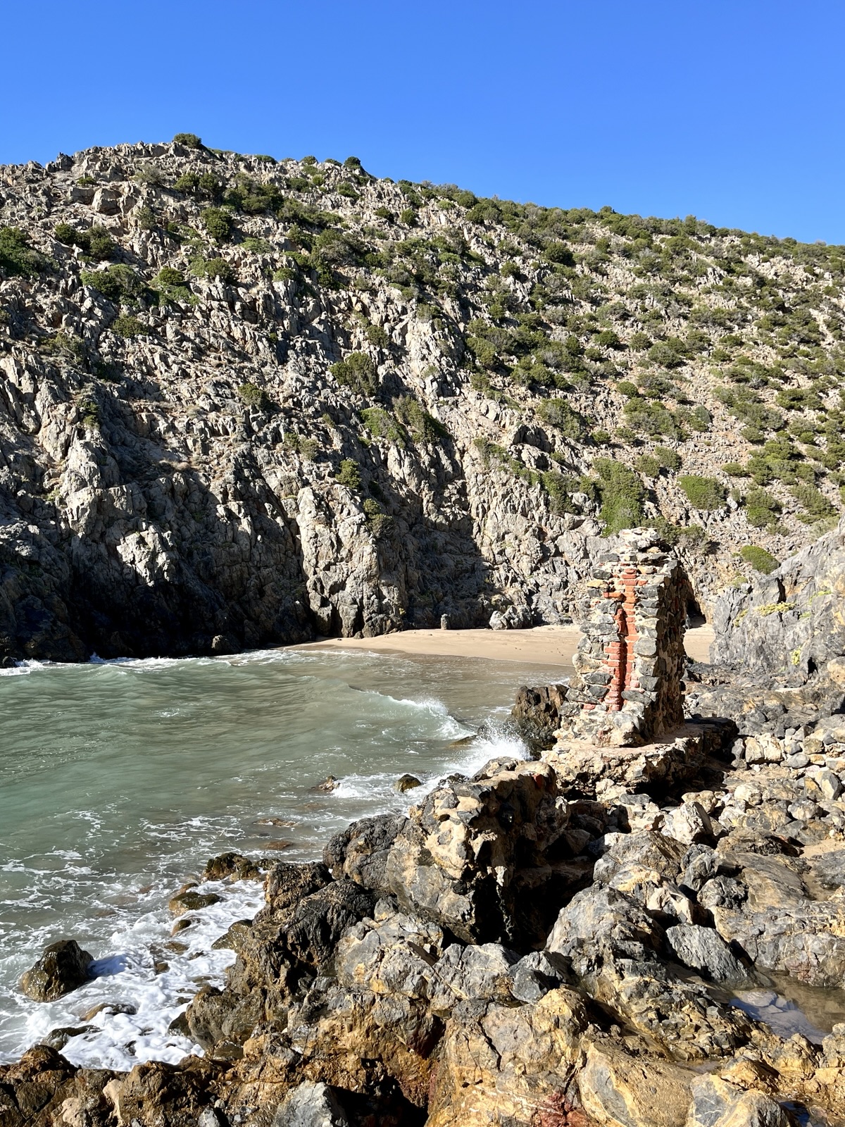 Übrigens: Selbst in dieser menschenleeren Gegend wirft die Bergbau-Vergangenheit von Südwestsardinien einen bizarren Schatten auf die Gegenwart. Im Umfeld von Naracauli und Ingurtosi wurden im 19. Jahrhundert in großem Maßstab Zinn und Blei abgebaut. Der Ausfluss des Rui Piscinas diente als Verschiffungshafen für diese Bodenschätze. Reste davon sind noch heute erhalten.