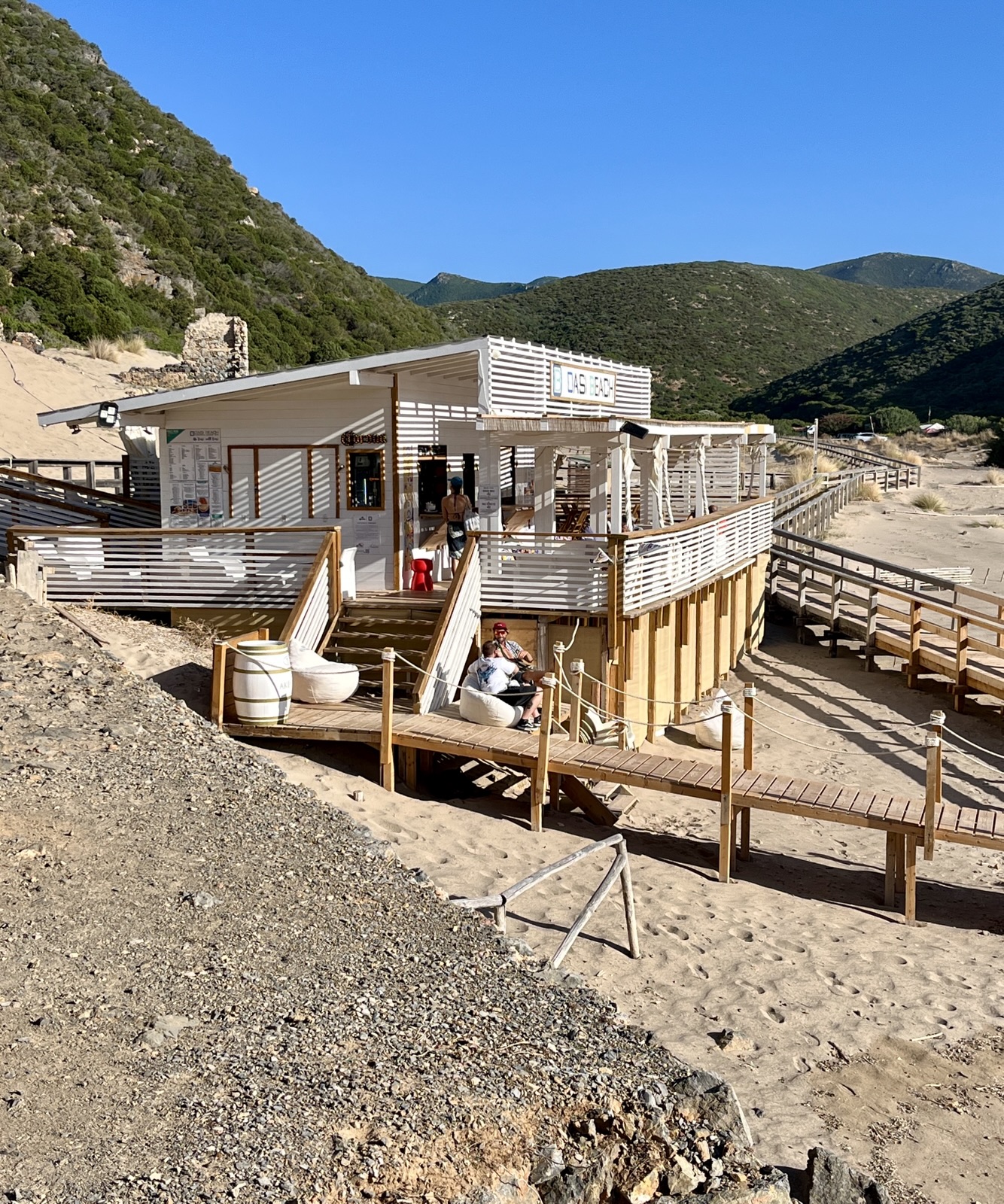 Es gibt da einen Campingplatz an der Costa Verde an der Westküste Sardiniens, der die Abenteurerherzen höherschlagen lässt: Er liegt inmitten einer wilden Dünenlandschaft, nur etwa zwei Kilometer von einem breiten Traumstrand (Spiaggia del Piscinas) entfernt, und man muss etwa fünf Kilometer Rüttelpiste fahren, um ihn zu erreichen.