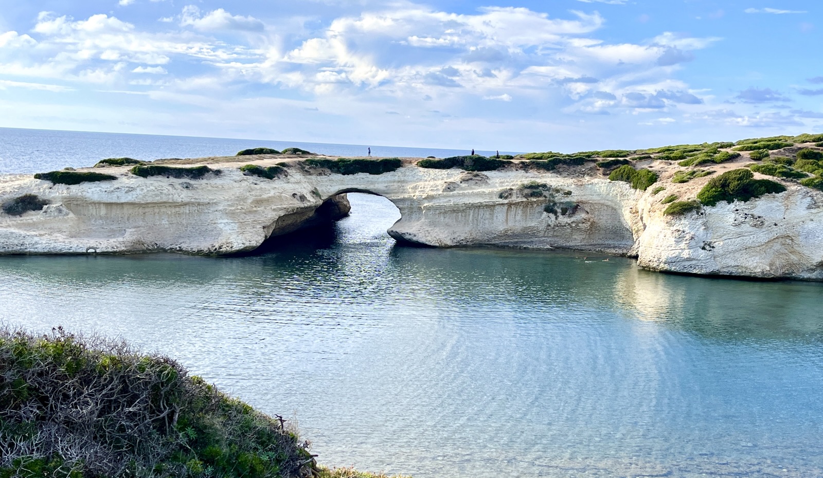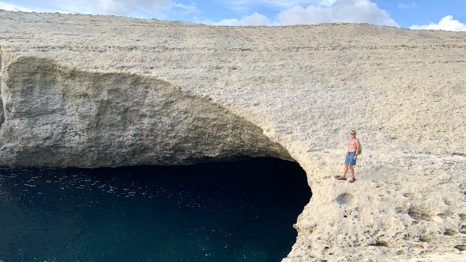 Die Erosion hat die etwa sieben Meter hohe Passage durch den Kalksteinfelsen gewaschen. Man kann durch ihn hindurch schwimmen, paddeln oder SUPen und dann vielleicht einmal sein Echo testen.