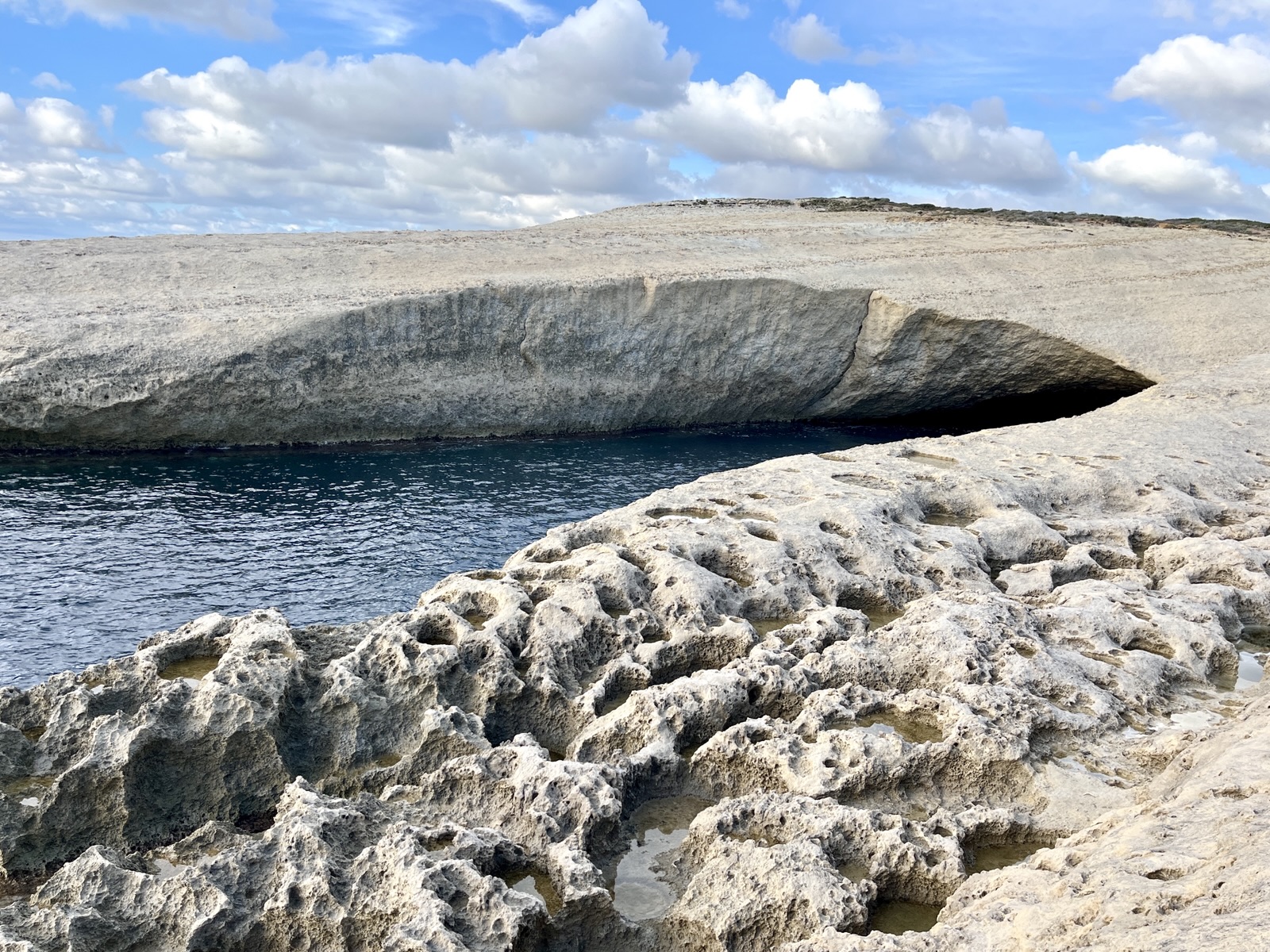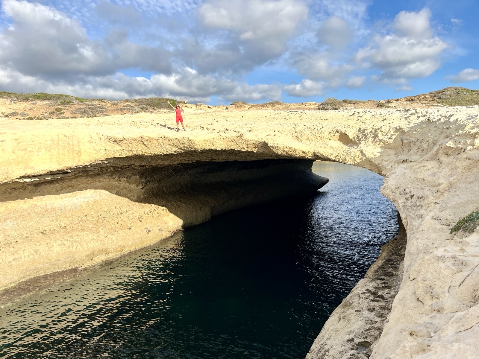 Auch wenn die Erkundung dieses Felsbogens für sich bereits gleichzeitig ein Erlebnis und Genuss ist, bitte unbedingt auch die Felsküste dahinter anschauen!