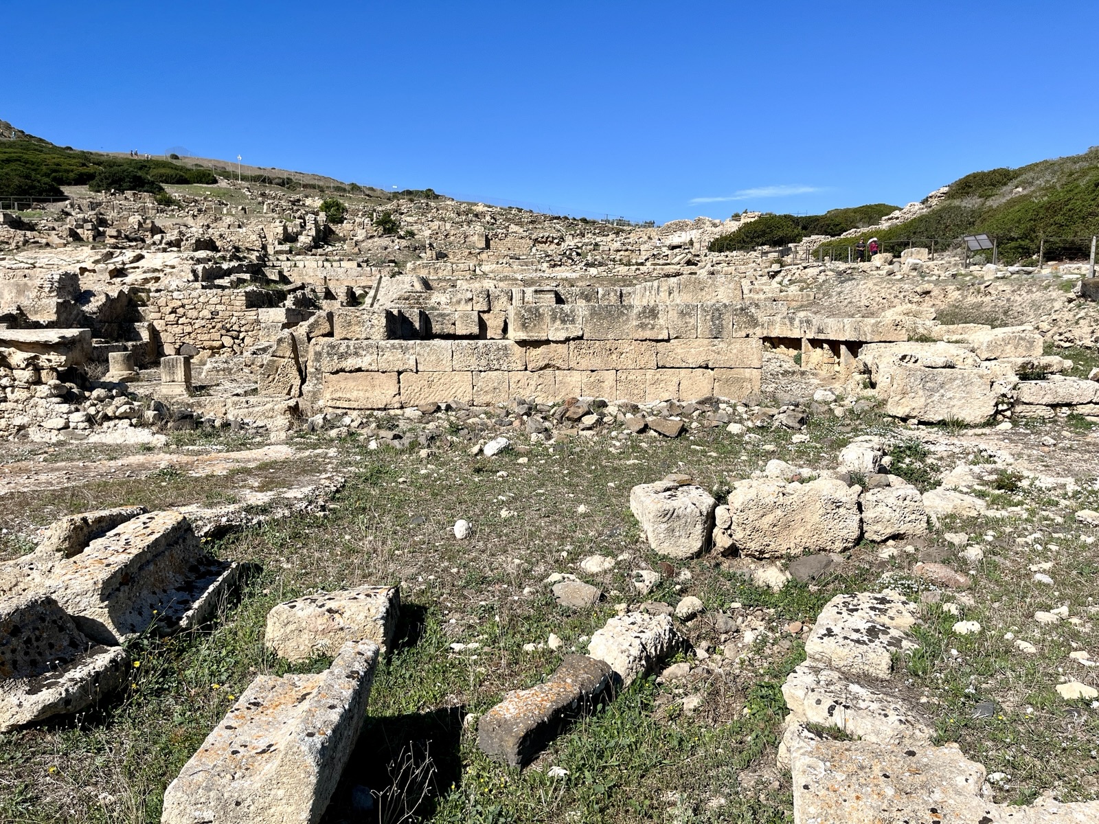 Nur ein Teil der Wohnbezirke wurde ausgegraben. Zu besichtigen ist im Wesentlichen das alte Stadtzentrum. In der Regel sind alle Ruinen eingezäunt. Besonders beeindruckend sind eine große Thermalanlage aus der römischen Zeit (Edificio Termale Romanum).