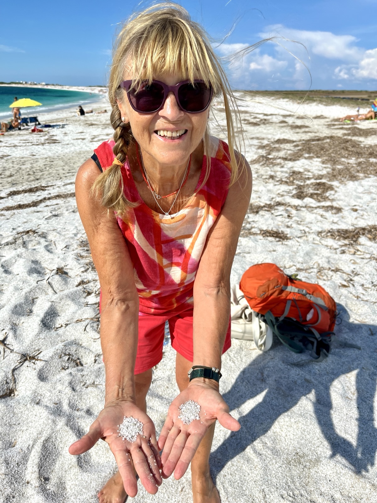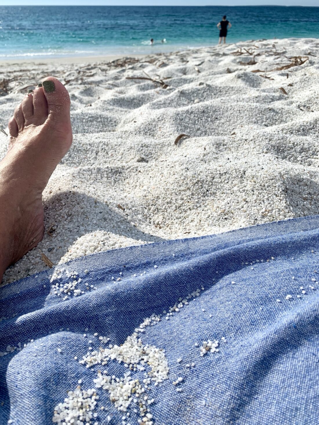 Der Sand hat hat eine glasartige Oberfläche und reflektiert stark, daher muss man sich mit Blick auf Sonnenbrand vorsehen.