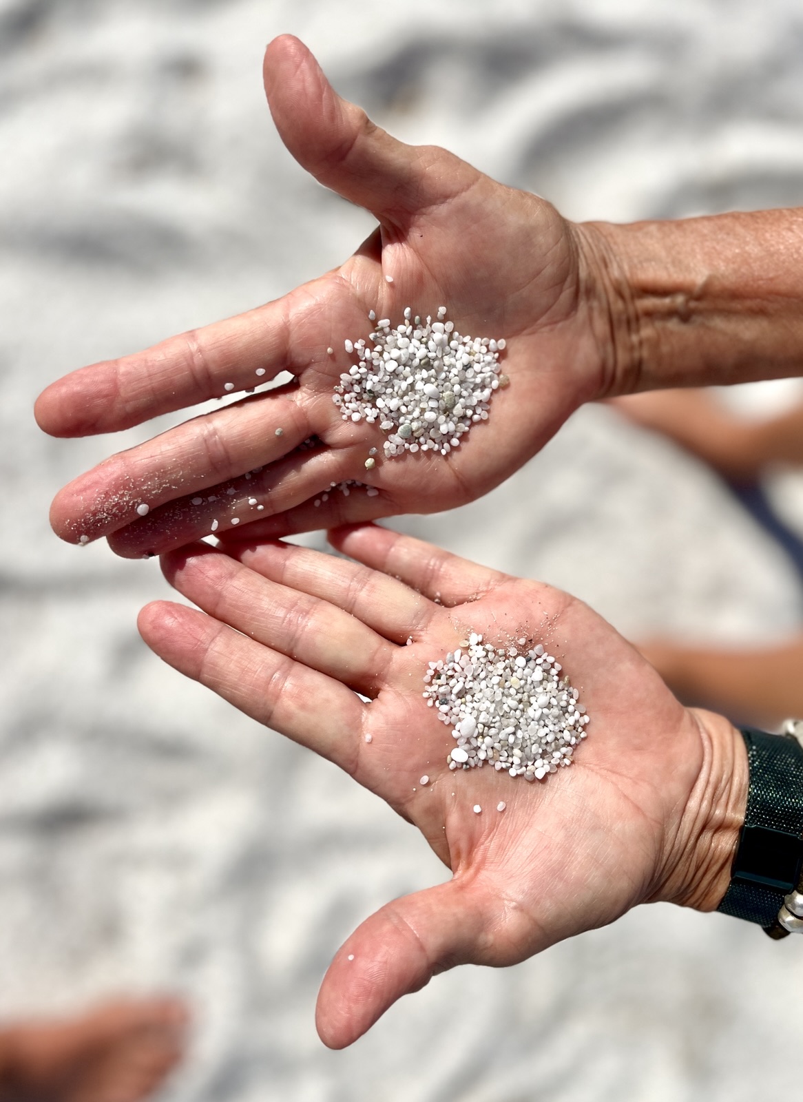 Sie stehen unter strengem Schutz, und das Mitnehmen von Quarzsand wird hart geahndet. Die faszinierenden funkelnden Körnchen erinnern nach unserer Einschätzung an Risottoreis. Sie sind Sedimente, die als Barriere zwischen dem Meer und einer Lagune wirken.